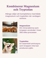 Calma kombinerar magnesium och tryptofan – två ämnen som många hundägare aktivt söker efter.