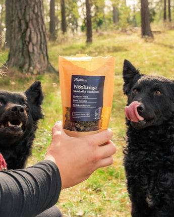 Lätt, smakrikt och perfekt som belöning. Vårt hundgodis av nötlunga är ett naturligt godis som din hund kommer älska. Tillverkat av 100% svensk nötlunga, utan tillsatser eller konstgjorda ingredienser.
